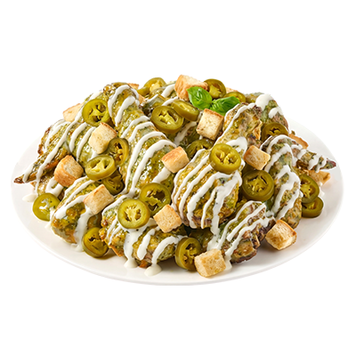 사워크림과 생크림을 조합한 드리즐로 마요피뇨의 맛의 레이어를 극대화 하였고, 할라피뇨를 토핑으로 활용하여 새콤하고 매콤한 맛을 더하였습니다. 바삭한 크루통은 마요피뇨의 식감을 다채롭게 올려줍니다. 맛있게 드시다가 함께 제공되는 악마소스에 푹 찍어 드시면 맵고 달콤한 새로운 맛의 풍미를 경험할 수 있습니다.